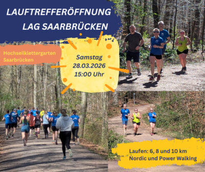 Am kommenden Samstag, 28. März 2026, startet die LAG Saarbrücken offiziell in die neue Laufsaison. Der FREUNDSCHAFTSLAUF führt über 6, 8 oder 10 Kilometer durch den Saarbrücker Stadtwald. Auch Nordic Walker und Power Walker sind herzlich willkommen. Eine Anmeldung ist nicht erforderlich – einfach vorbeikommen und mitlaufen. Für alle, die es etwas länger laufen möchten: Die […]