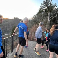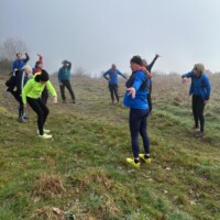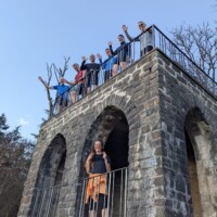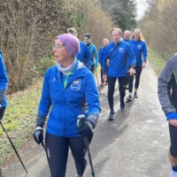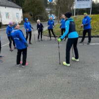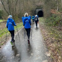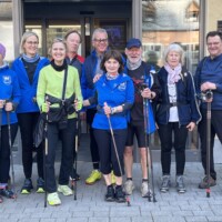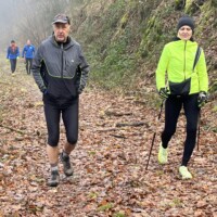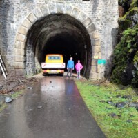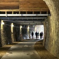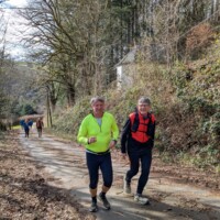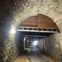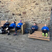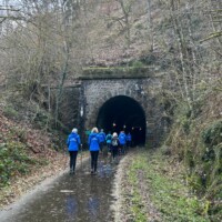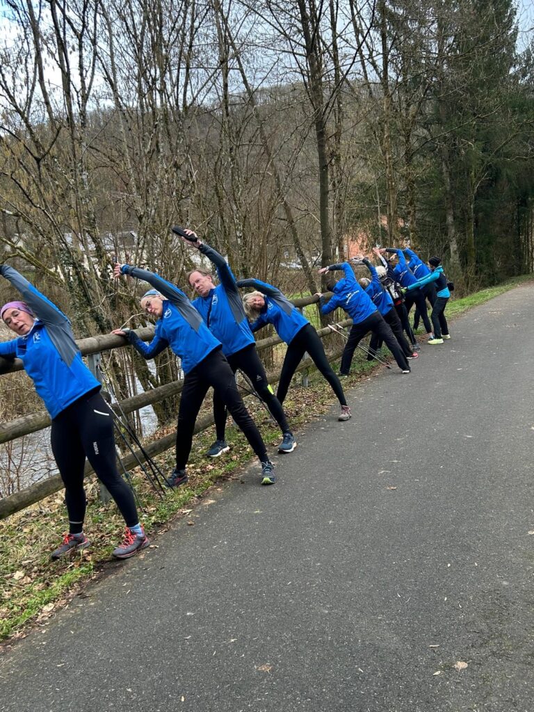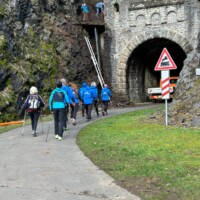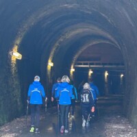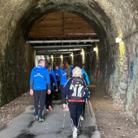 Wer es flacher mochte, fand auf der hervorragend ausgebauten ehemaligen Bahntrasse ideale Bedingungen. Sie ist über einen eindrucksvoll beleuchteten Tunnel erreichbar und bietet gleichmäßige Streckenführung durch die Landschaft. Auch unsere Walker und Wanderer nutzten die vielfältigen Wege – ergänzt durch gezielte Dehn-, Mobilisations- und Mobilityübungen angeleitet von Beatrice unterwegs. Selbst unser Radfahrer Eckhard kam auf seine Kosten und erkundete die Gegend auf ausgedehnten Touren.
