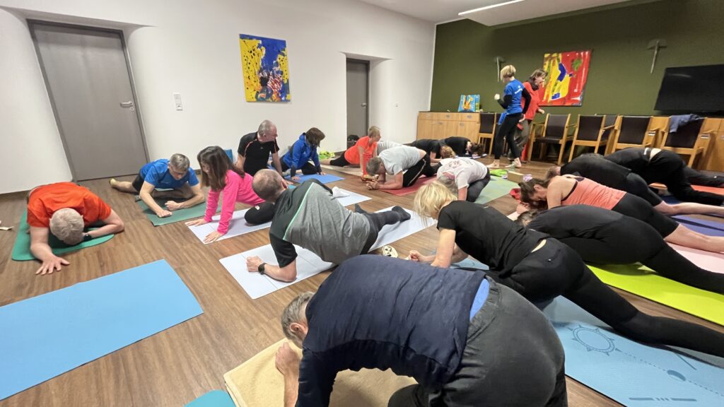 Fehlen durfte nicht die schon traditionelle Yogaeinheit von Beatrice, bei der die beanspruchte Muskulatur wieder Länge fand. Zwischen wohltuender Entspannung und dem ein oder anderen leisen Stöhnen wurde deutlich: Regeneration gehört genauso dazu wie Tempo.