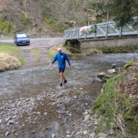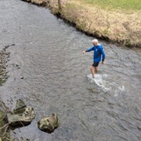 Eine kleine Episode wird sicher in Erinnerung bleiben: An einer Furt stellte Dirk die Wahl – den bequemen Weg über eine kleine Brücke oder direkt durchs Wasser. Markus zögerte nicht lange und entschied sich fürs Abenteuer. Schuhe aus? Fehlanzeige. Mit entschlossenem Schritt watete er durch die Furt – begleitet von Gelächter und anerkennenden Kommentaren.