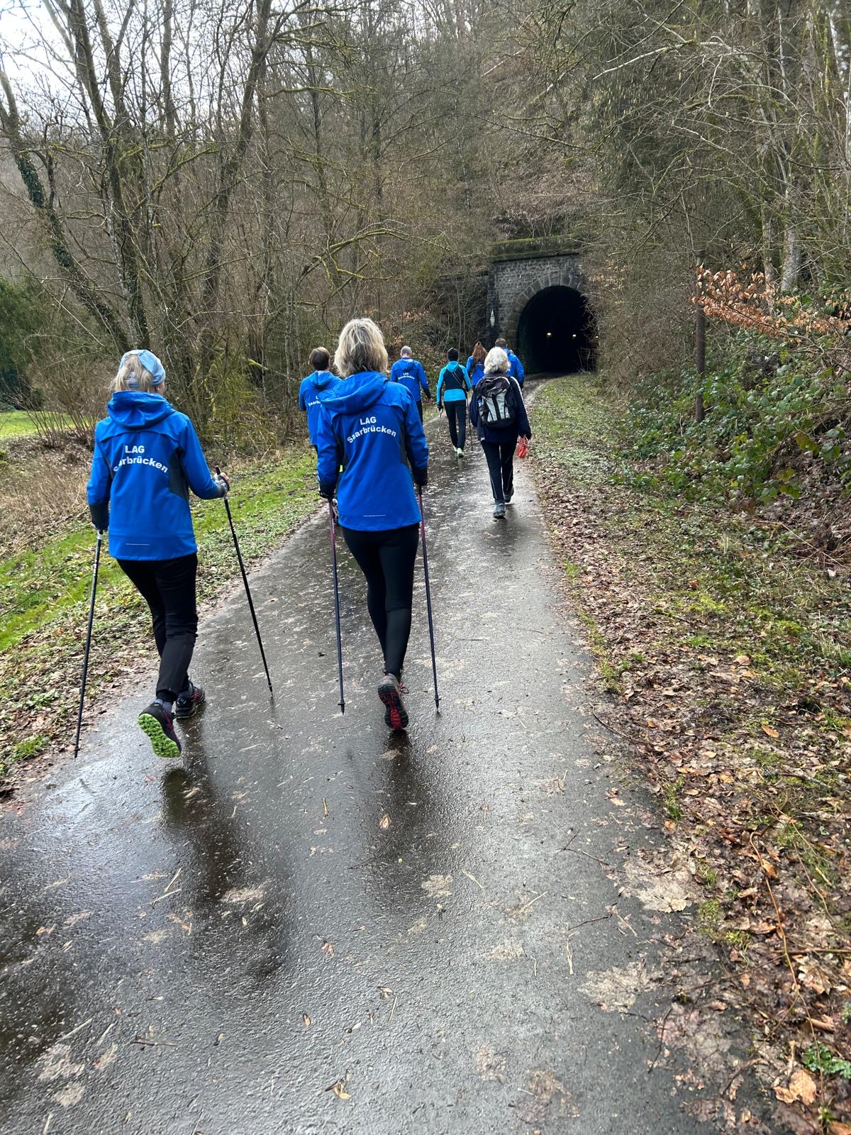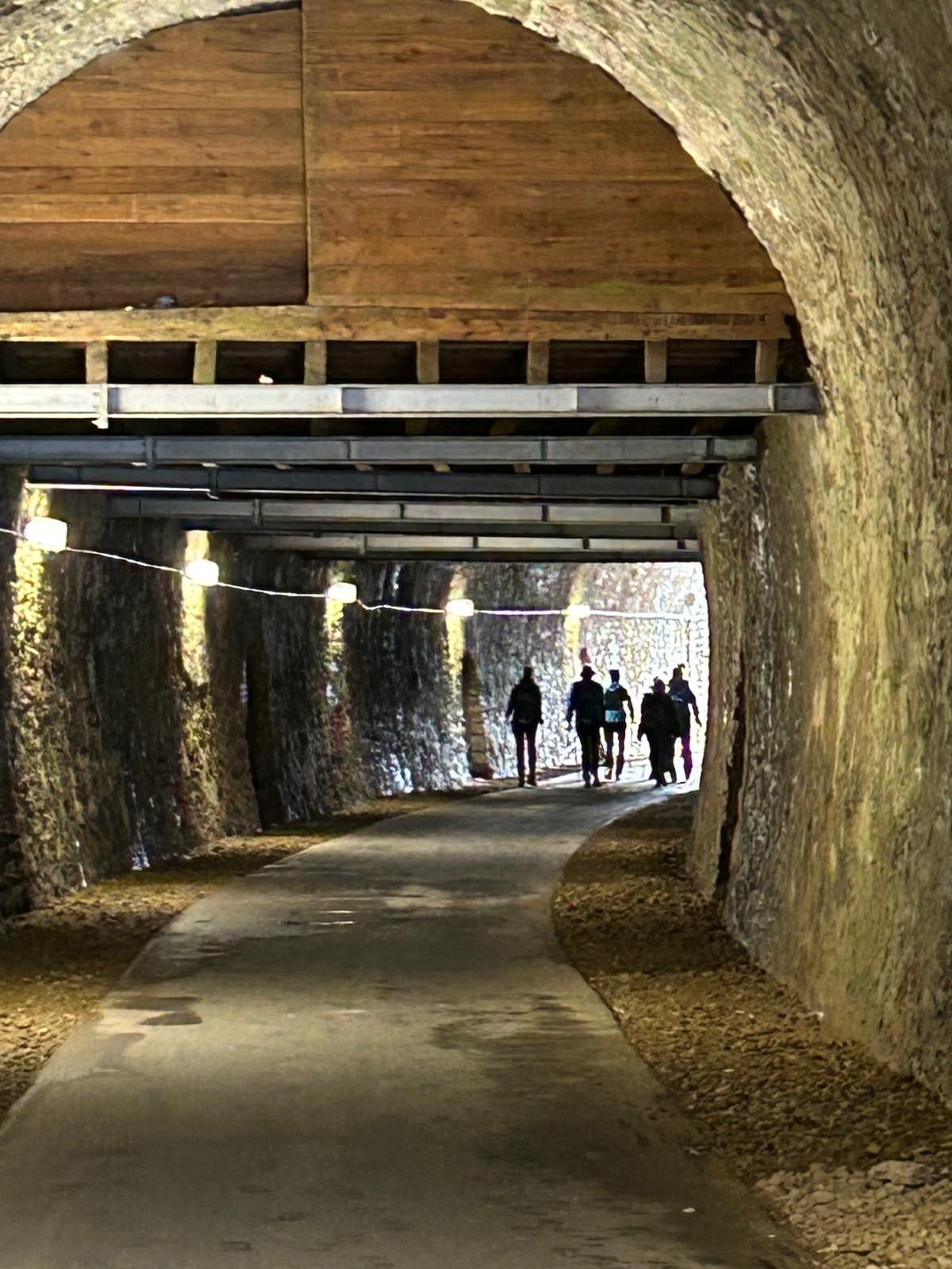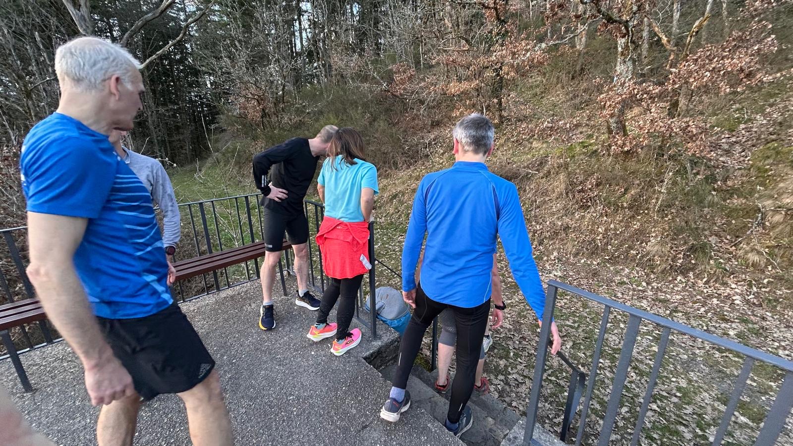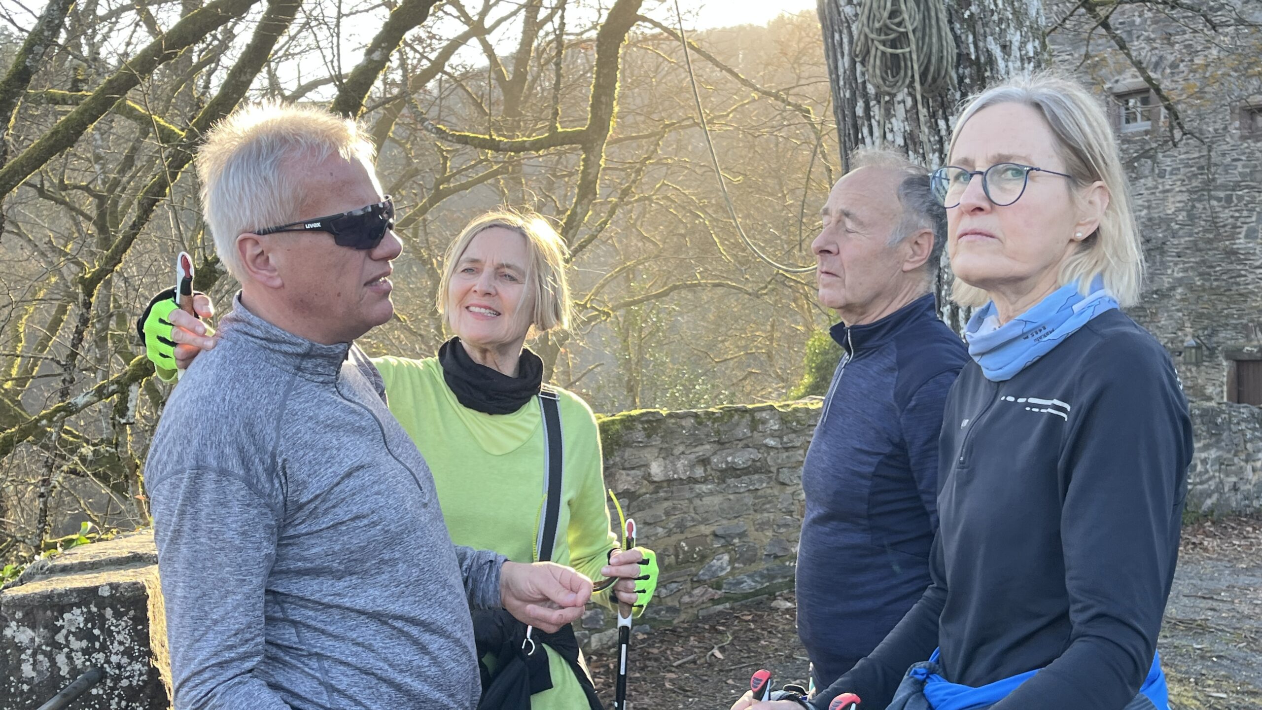 Wer es flacher mochte, fand auf der hervorragend ausgebauten ehemaligen Bahntrasse ideale Bedingungen. Sie ist über einen eindrucksvoll beleuchteten Tunnel erreichbar und bietet gleichmäßige Streckenführung durch die Landschaft. Auch unsere Walker und Wanderer nutzten die vielfältigen Wege – ergänzt durch gezielte Dehn-, Mobilisations- und Mobilityübungen angeleitet von Beatrice unterwegs. Selbst unser Radfahrer Eckhard kam auf seine Kosten und erkundete die Gegend auf ausgedehnten Touren.