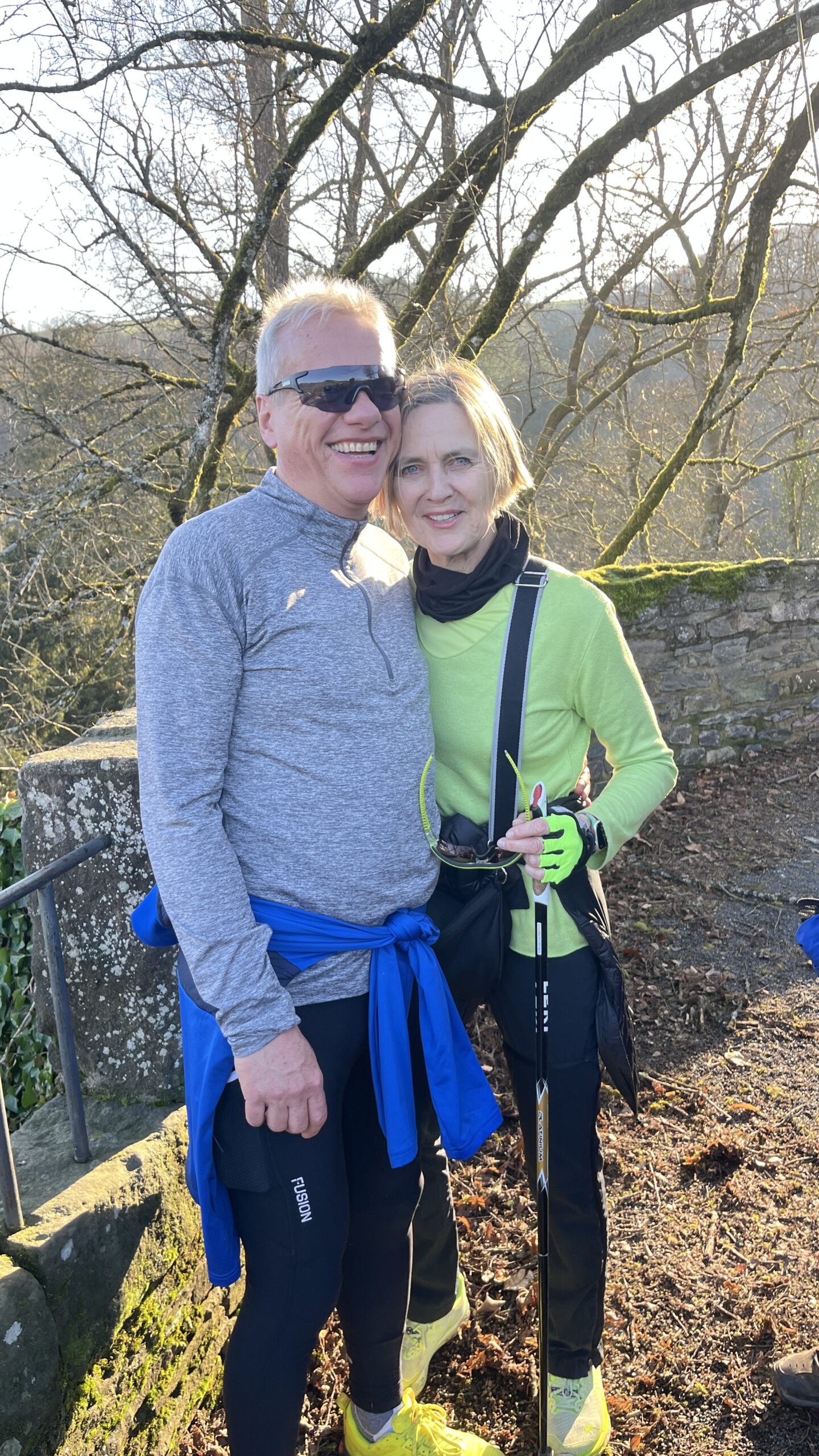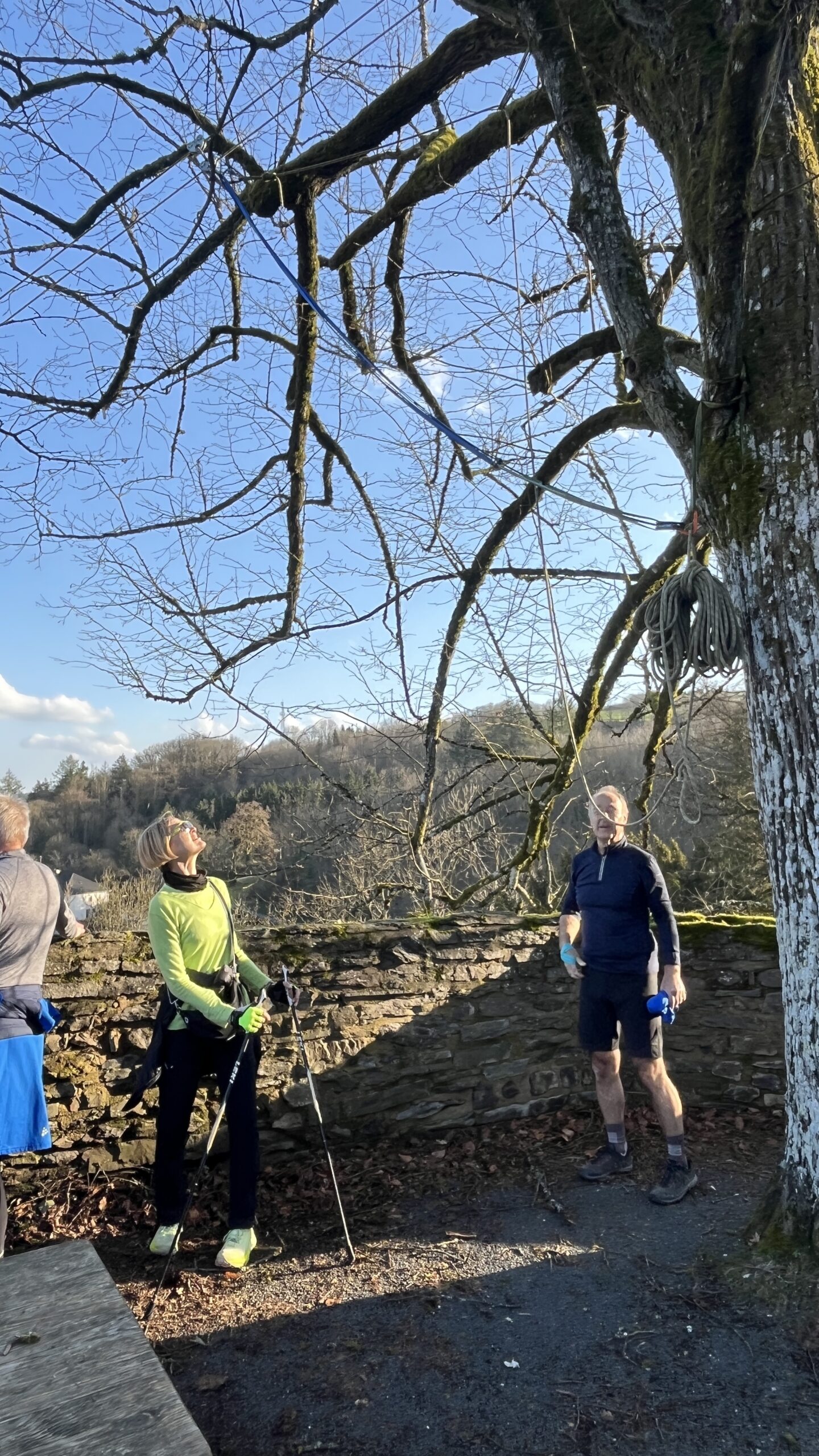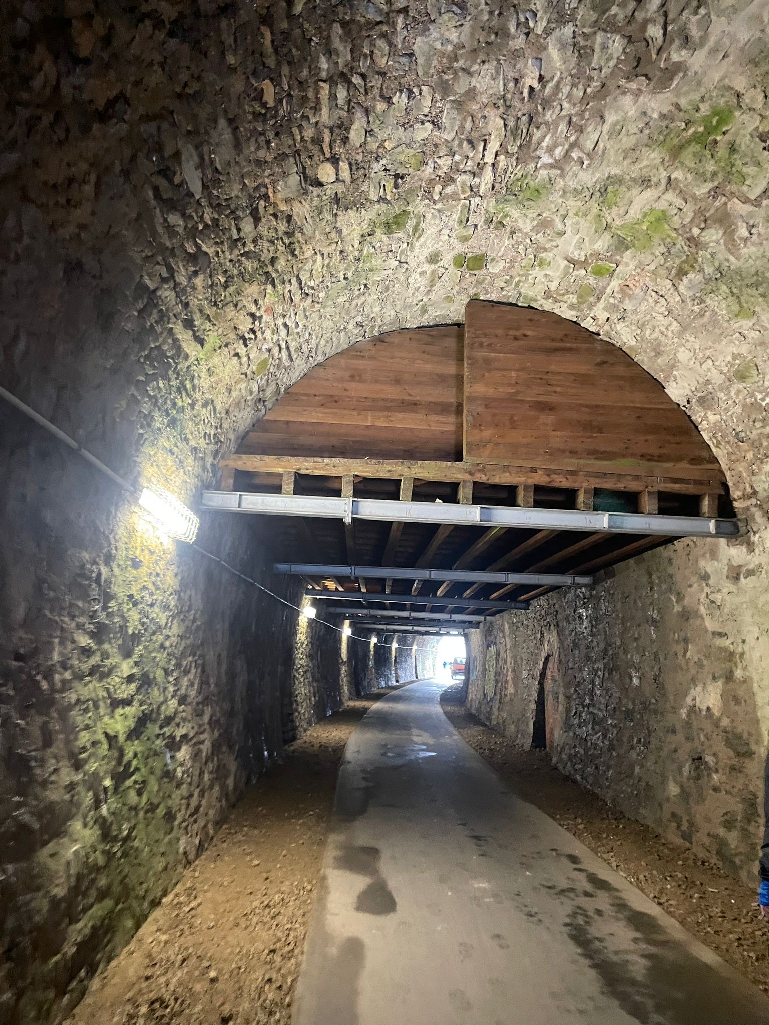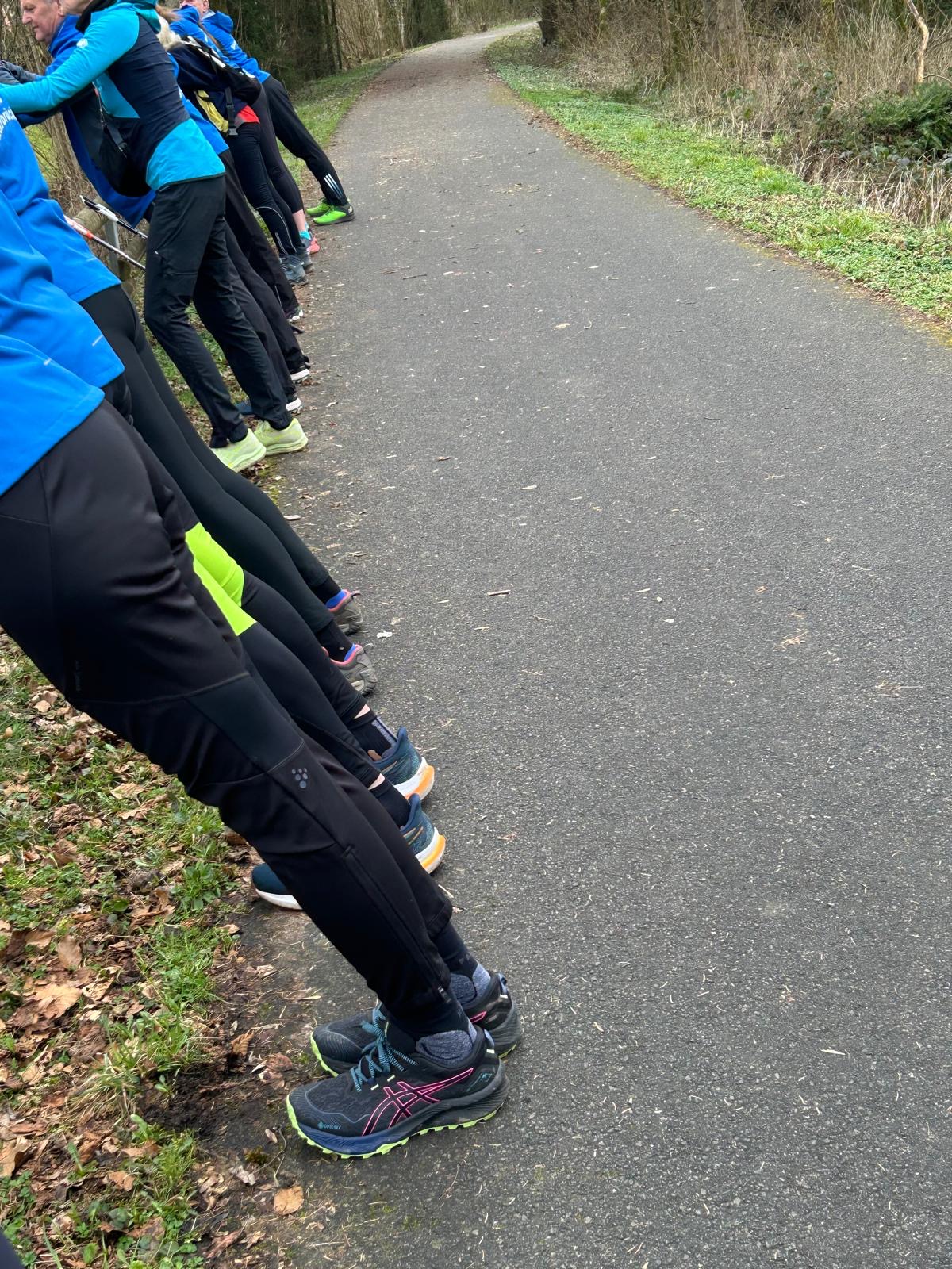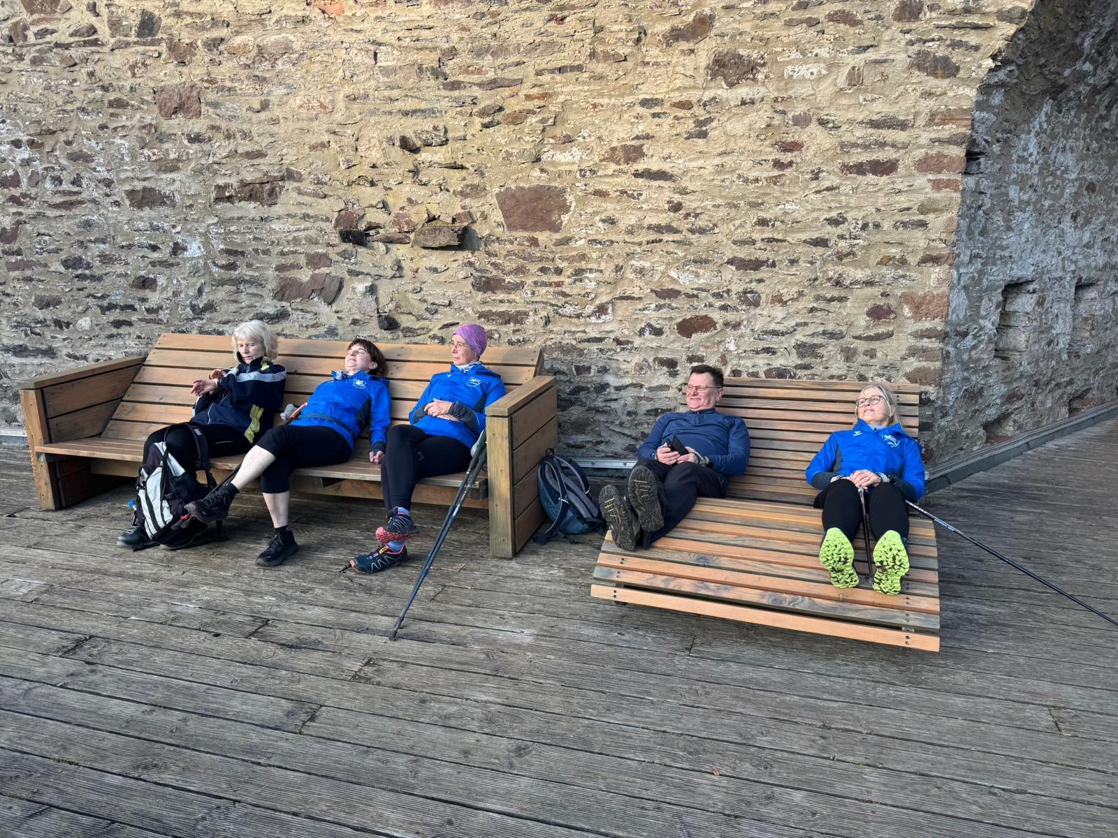Wer es flacher mochte, fand auf der hervorragend ausgebauten ehemaligen Bahntrasse ideale Bedingungen. Sie ist über einen eindrucksvoll beleuchteten Tunnel erreichbar und bietet gleichmäßige Streckenführung durch die Landschaft. Auch unsere Walker und Wanderer nutzten die vielfältigen Wege – ergänzt durch gezielte Dehn-, Mobilisations- und Mobilityübungen angeleitet von Beatrice unterwegs. Selbst unser Radfahrer Eckhard kam auf seine Kosten und erkundete die Gegend auf ausgedehnten Touren.