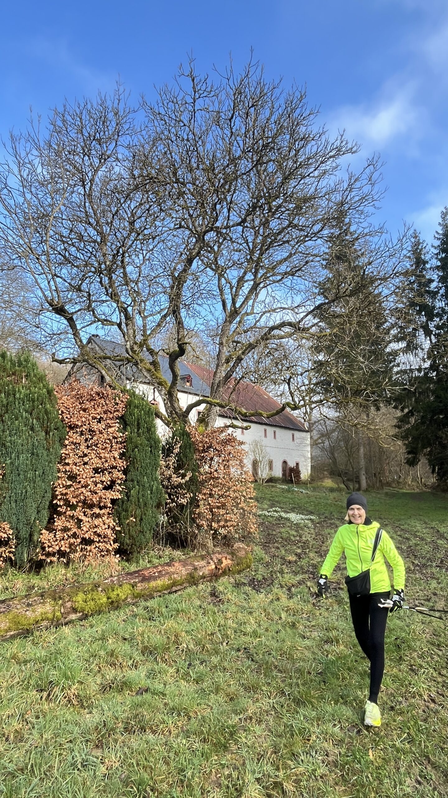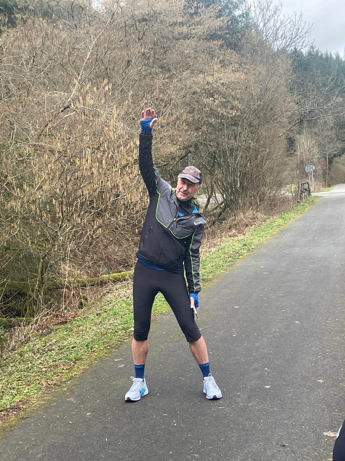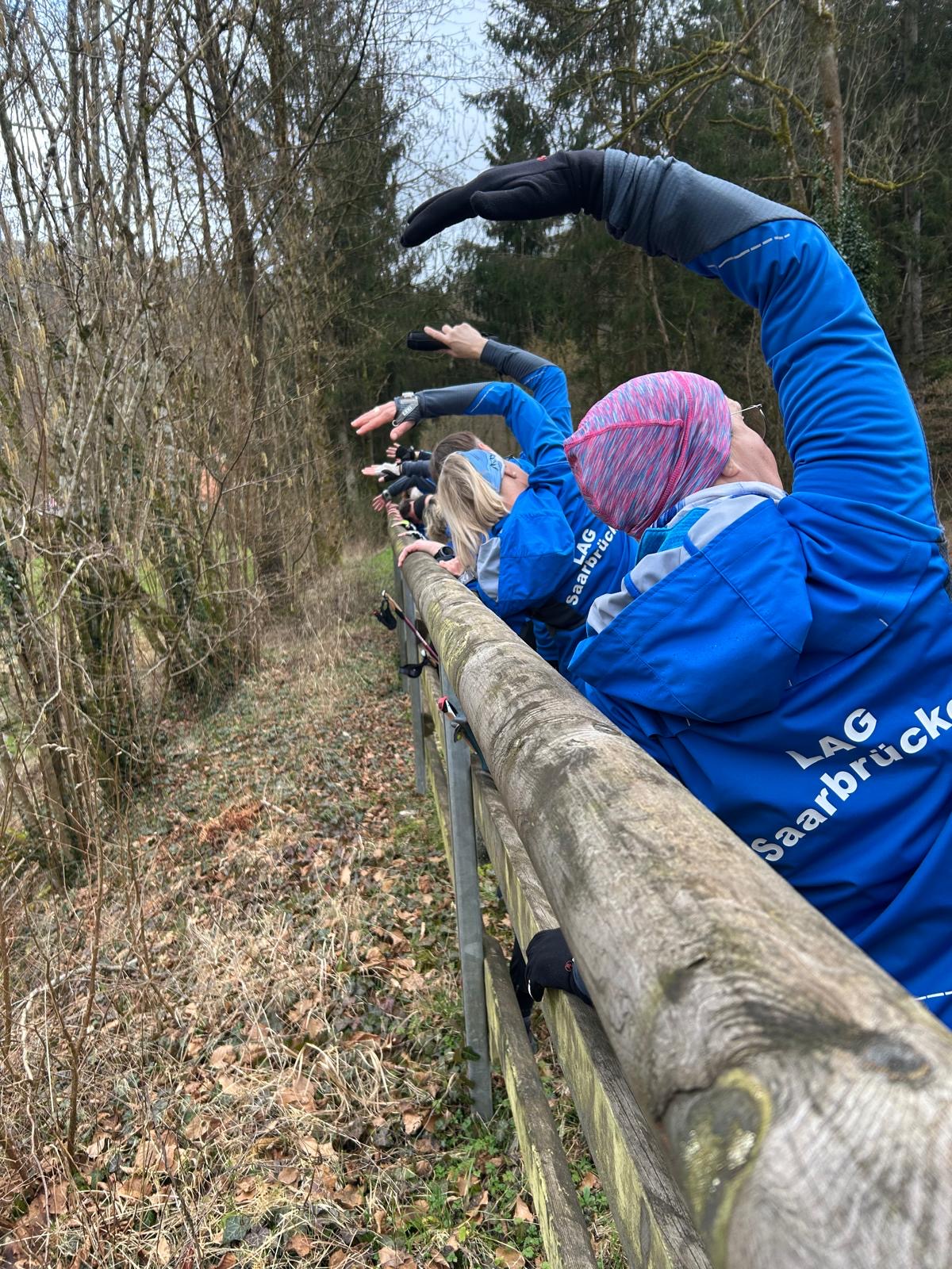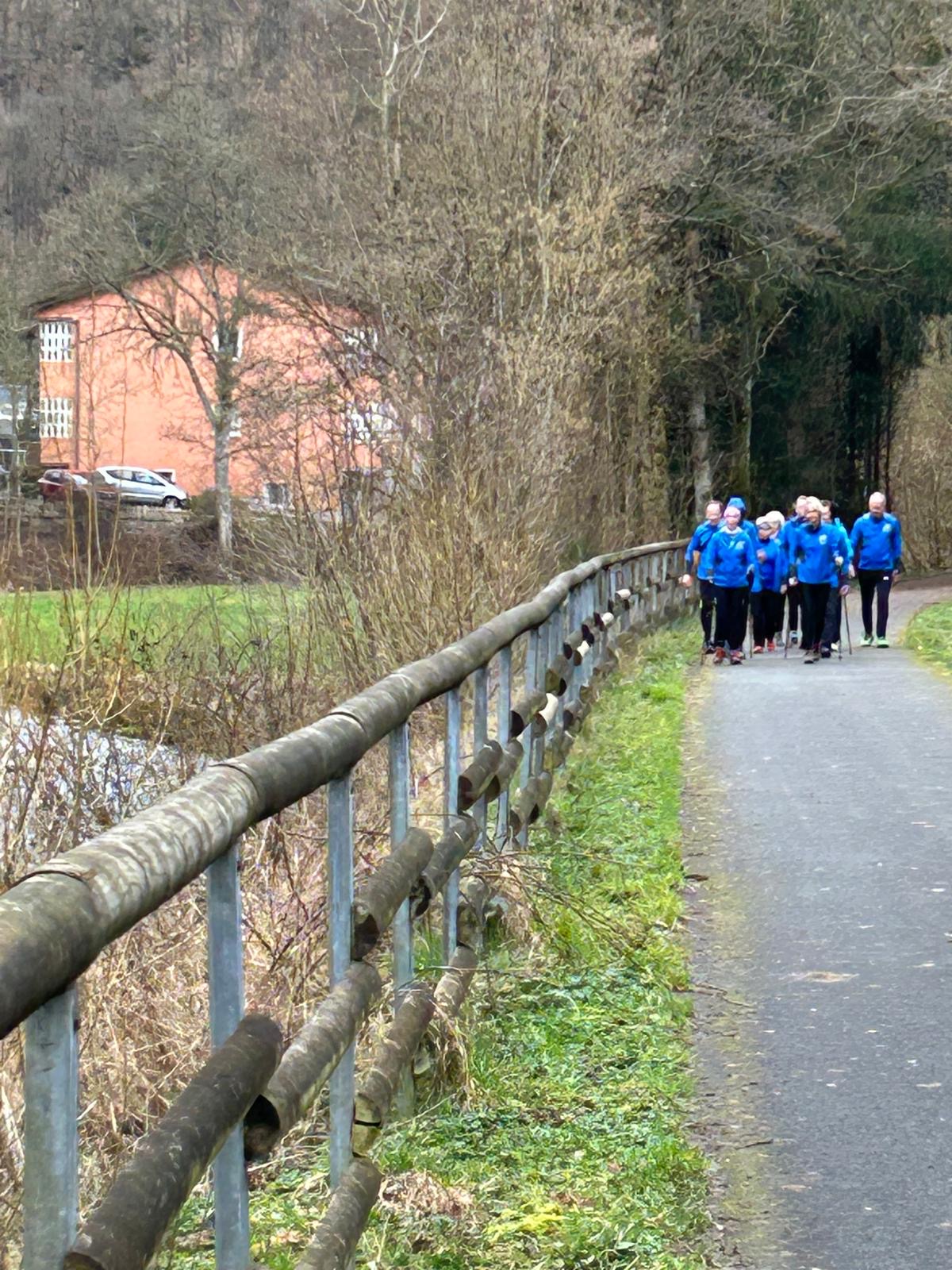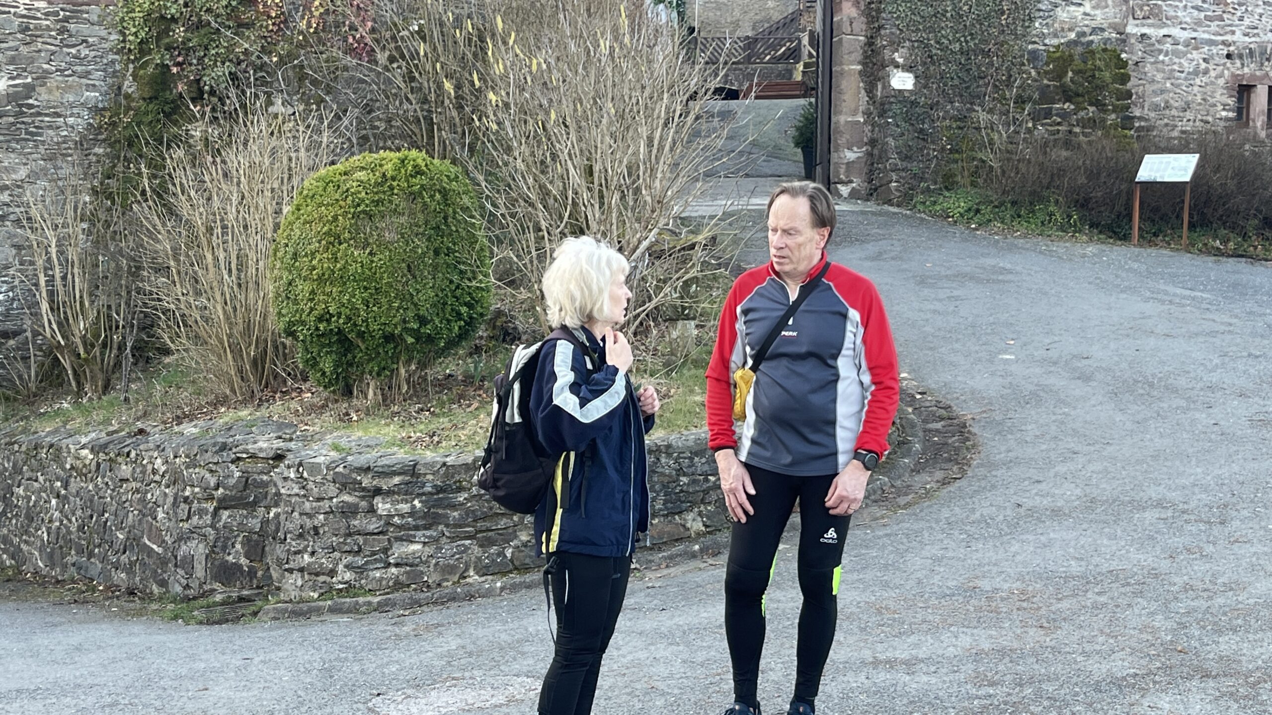Wer es flacher mochte, fand auf der hervorragend ausgebauten ehemaligen Bahntrasse ideale Bedingungen. Sie ist über einen eindrucksvoll beleuchteten Tunnel erreichbar und bietet gleichmäßige Streckenführung durch die Landschaft. Auch unsere Walker und Wanderer nutzten die vielfältigen Wege – ergänzt durch gezielte Dehn-, Mobilisations- und Mobilityübungen angeleitet von Beatrice unterwegs. Selbst unser Radfahrer Eckhard kam auf seine Kosten und erkundete die Gegend auf ausgedehnten Touren.