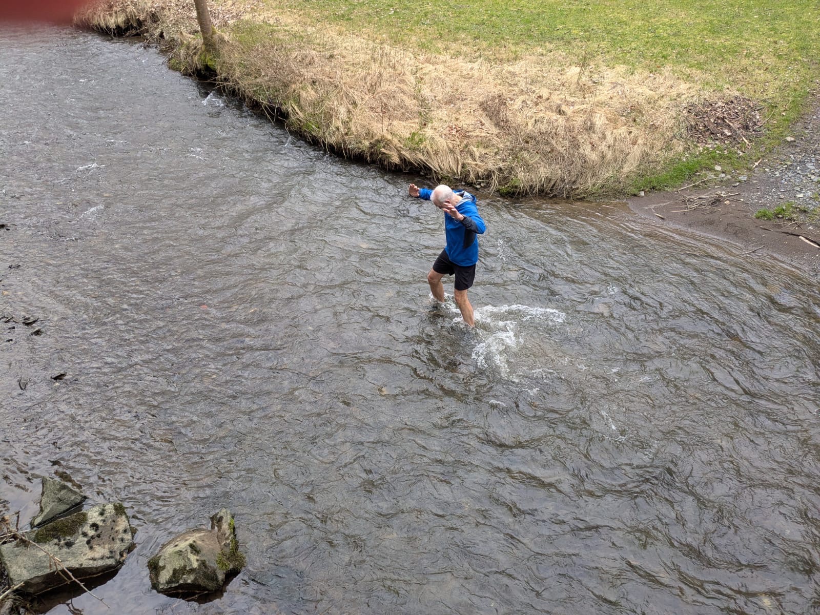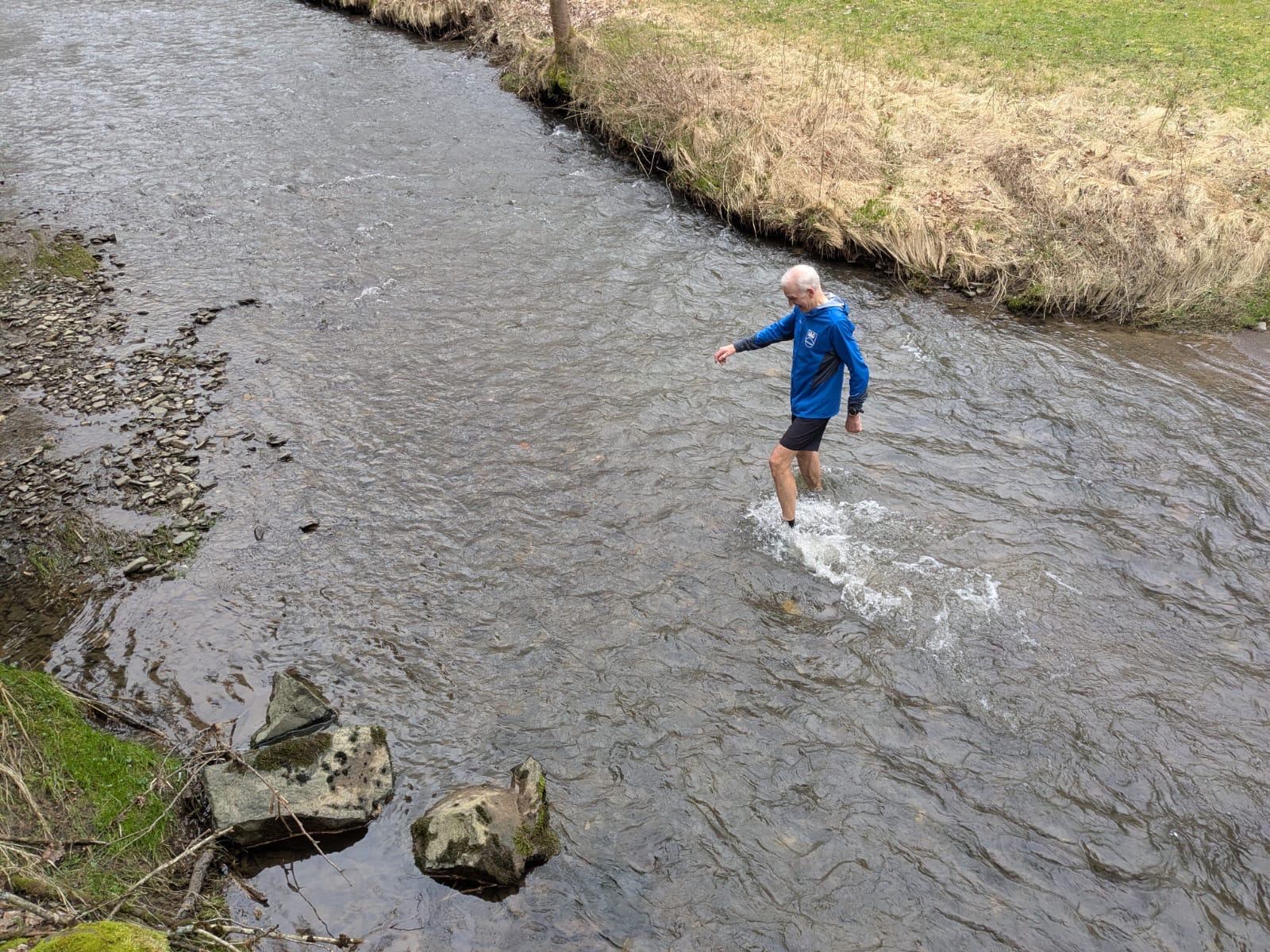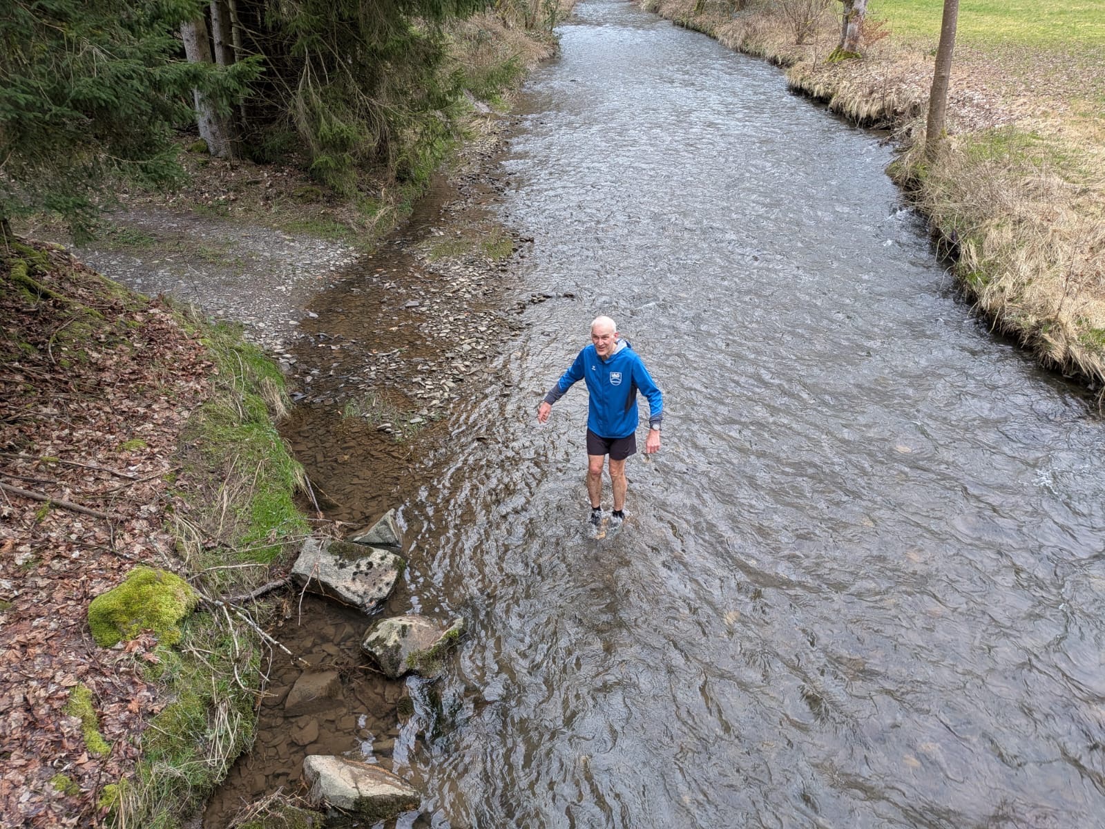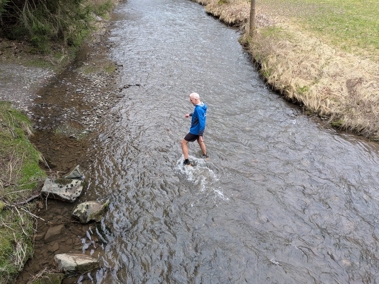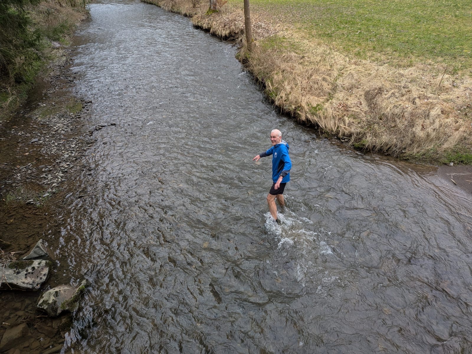 Eine kleine Episode wird sicher in Erinnerung bleiben: An einer Furt stellte Dirk die Wahl – den bequemen Weg über eine kleine Brücke oder direkt durchs Wasser. Markus zögerte nicht lange und entschied sich fürs Abenteuer. Schuhe aus? Fehlanzeige. Mit entschlossenem Schritt watete er durch die Furt – begleitet von Gelächter und anerkennenden Kommentaren.