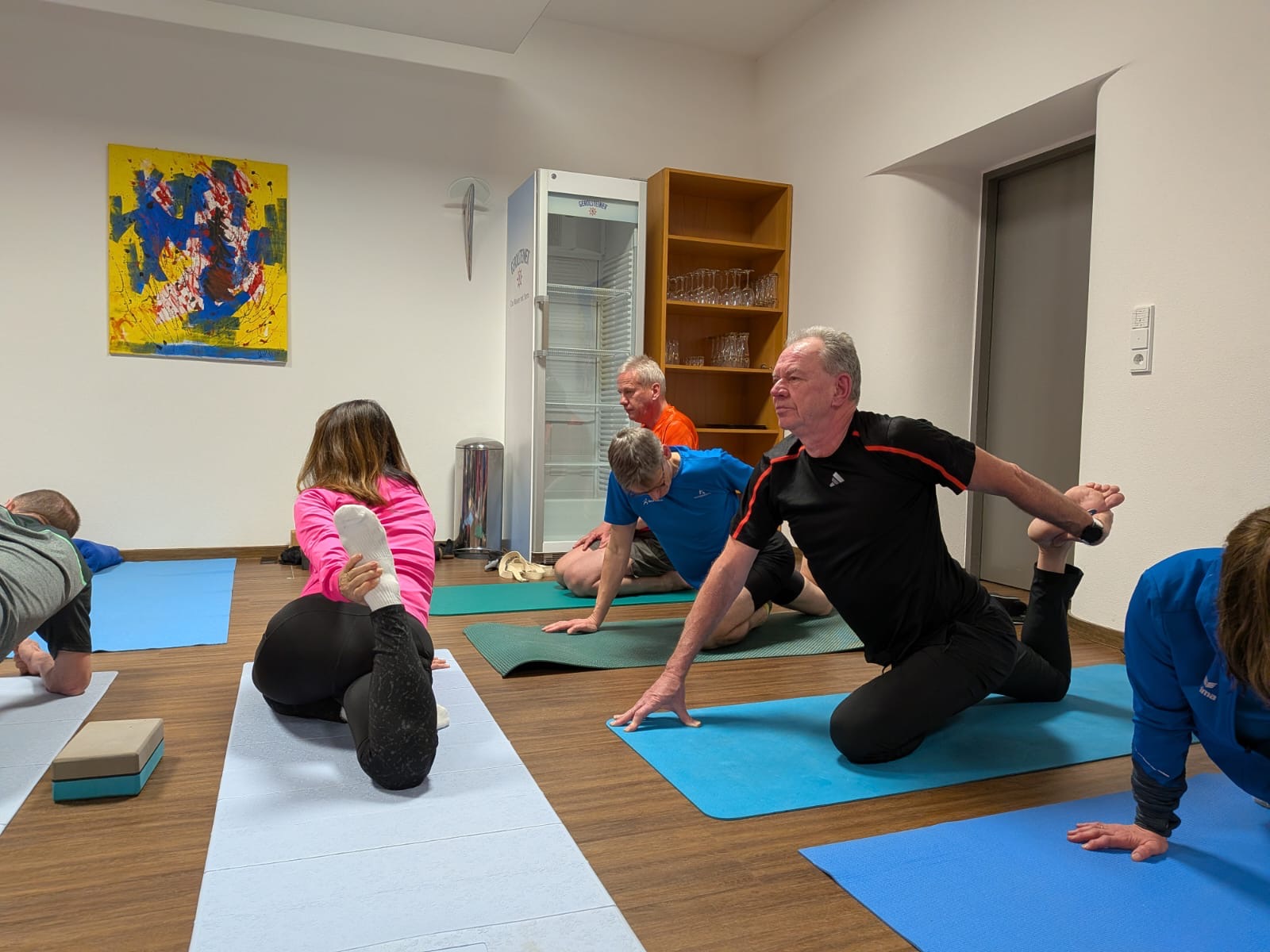 Fehlen durfte nicht die schon traditionelle Yogaeinheit von Beatrice, bei der die beanspruchte Muskulatur wieder Länge fand. Zwischen wohltuender Entspannung und dem ein oder anderen leisen Stöhnen wurde deutlich: Regeneration gehört genauso dazu wie Tempo.