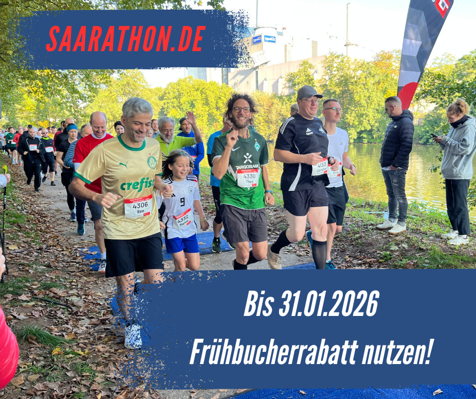 Wer 2026 beim SAARathon an den Start gehen möchte, kann sich jetzt nicht nur einen Startplatz, sondern auch einen Preisvorteil sichern: Der Frühbucherrabatt gilt noch bis 31. Januar 2026.