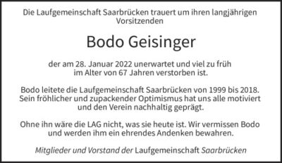 Wir können es nicht fassen. Unser ehemaliger Vorsitzender Bodo läuft nicht mehr mit uns. Bodo hat nicht nur mit großem Geschick die sportliche Flaute der LAG zur Zeit der Jahrtausendwende gemeistert, sondern bleibt auch als Marathon-, Berg- und Ultraläufer in unserem Gedächtnis. Als Vorsitzender war Bodo nie der typische Sportfunktionär, der mit entsprechenden Verordnungen und […]